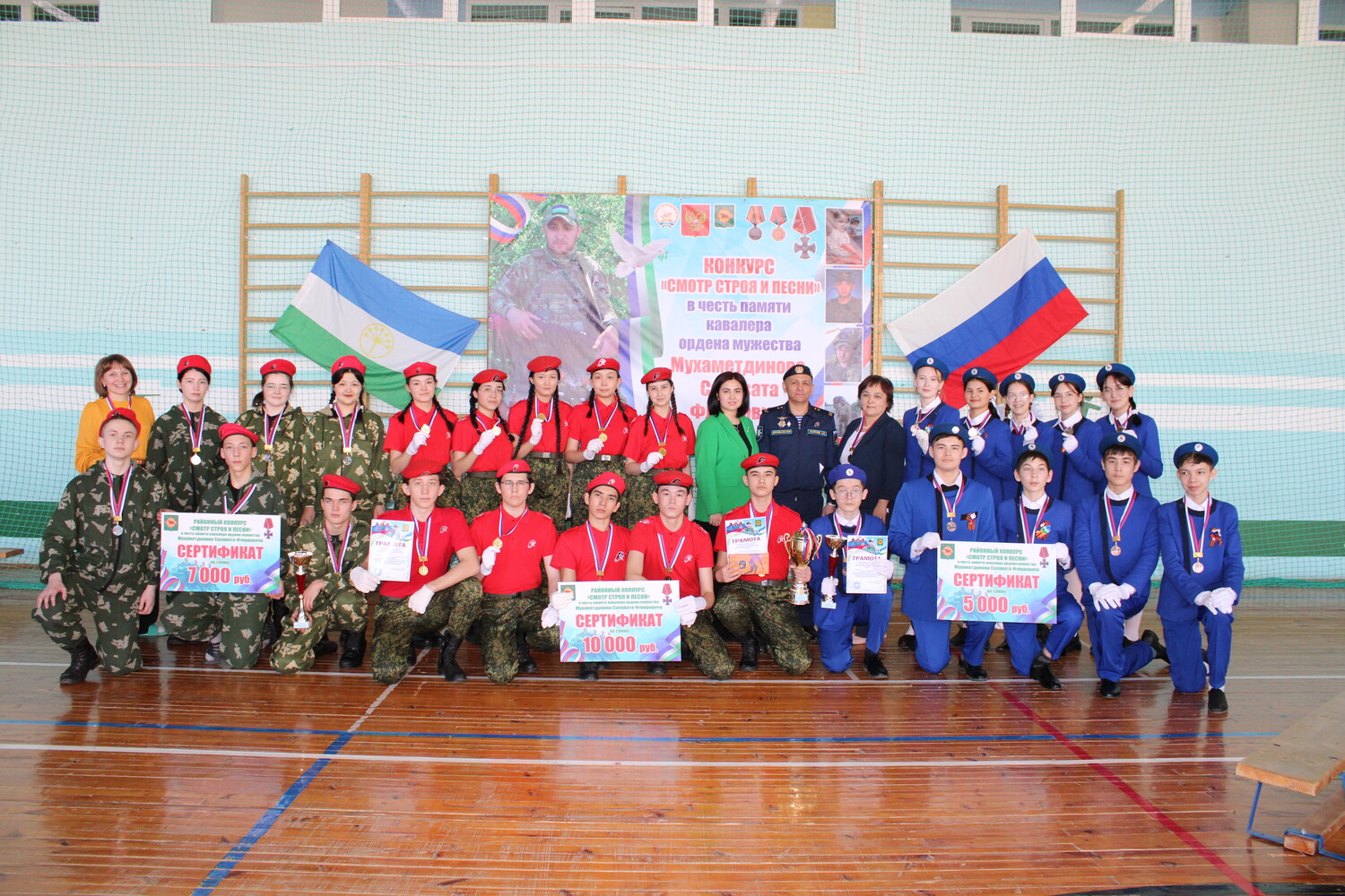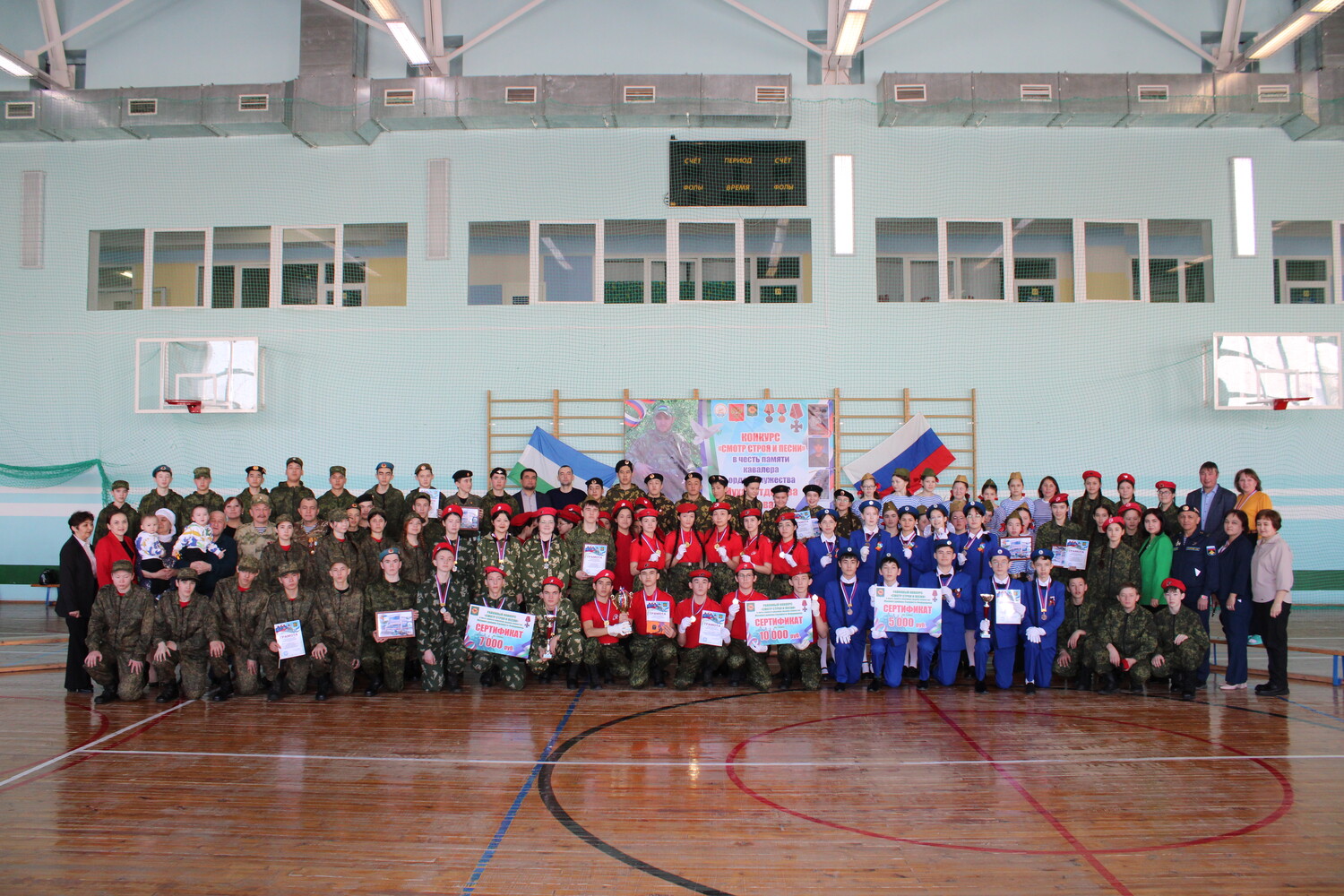 В целях военно-патриотического воспитания обучающихся, формирования высокой социальной активности и патриотизма, чувства долга перед Родиной и готовности к её защите 26 февраля 2026 года на базе АУ ФОК «Урал» прошел муниципальный конкурс «Смотр строя и песни», посвященный памяти погибшего военнослужащего на специальной военной операции в Украине Мухаметдинова Салавата Флюровича, где участвовали команды МОБУ СОШ д. Аскарово, д. Байназарово, д. Иргизла, д. Старомунасипово, с. Старосубхангулово, д. Абдулмамбетово, ООШ с. Старосубхангулово, д. Новосубхангулово, Новомусятовского филиала МОБУ СОШ с. Старосубхангулово. Основными критериями являлись: - внешний вид отряда; - строевые приёмы на месте, строевые приёмы в движении; - рапорт командира; - прохождение торжественным маршем; - исполнение строевой песни; - действия командира. Все участники конкурса показали хороший уровень подготовки и стремления к победе. Ребята продемонстрировали дисциплинированность, четко и дружно выполняли приемы строевой подготовки, следуя указаниям своих командиров и слаженно исполняли патриотические песни. В состав жюри входили: Рысбаева И.З. – руководитель ММС МКУ Бурзянский РОО, Галиев О.М. – председатель Совета ветеранов Бурзянского района, Буранбаев А.Р. – участник СВО, Ямилов В.М. – тренер МАУ ДО ДЮСШ, Мухаметдинова К.Х. – жена военнослужащего. По итогам конкурсных испытаний призерами стали: 1 место – команда МОБУ СОШ с. Старосубхангулово «Юнармейцы»; 2 место – команда МОБУ СОШ д. Аскарово «Патриот»; 3 место – команда МОБУ СОШ с. Старосубхангулово «Шаймуратовцы». Победитель в номинации «Лучший командир» - ученик 10 класса МОБУ СОШ с. Старосубхангулово. Команды-победители и призеры награждены дипломами и сертификатами на сумму 10 000, 7 000 и 5 000 рублей. Команды участники награждены грамотами об участии и сертификатами на разовое посещение бассейна АУ ФОК «Урал». Лучший командир награжден дипломом за победу в номинации «Лучший командир» и ценным подарком.
